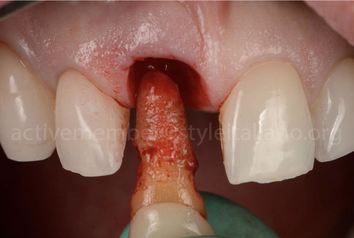 Để bảo tồn xương mặt ngoài của ổ răng, một mảnh rễ được đặt giữa cấy ghép và xương. Kỹ thuật này ngăn ngừa lõm nướu phía trước sau khi xương được tái tạo.